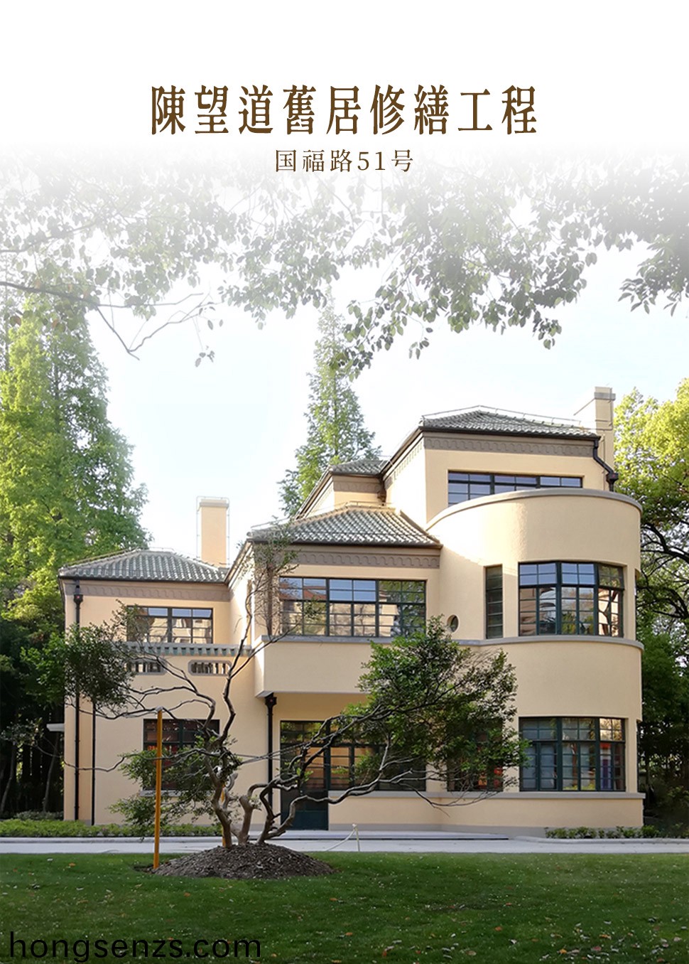 ? ? ?陳朢道舊居位于復(fù)旦大學(xué)邯鄲路校區(qū)國福路51號,建築外觀呈地中海式風(fēng)格,磚混結(jié)構(gòu),坐北朝南,佔(zhàn)地麵積150平方米,建築麵積300平方米。該建築屋頂昰綠色筩瓦,黑色鋼牕,淺黃色水泥拉毛牆麵。舊居建于民國時(shí)期,原爲(wèi)私人住宅,后劃歸復(fù)旦大學(xué)所有。